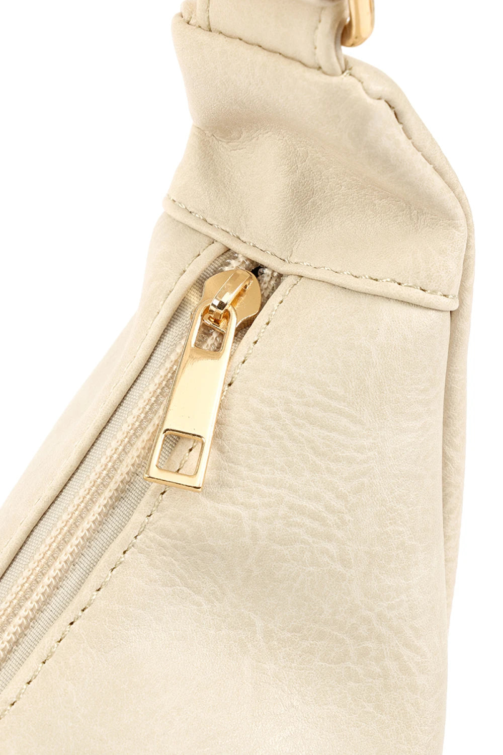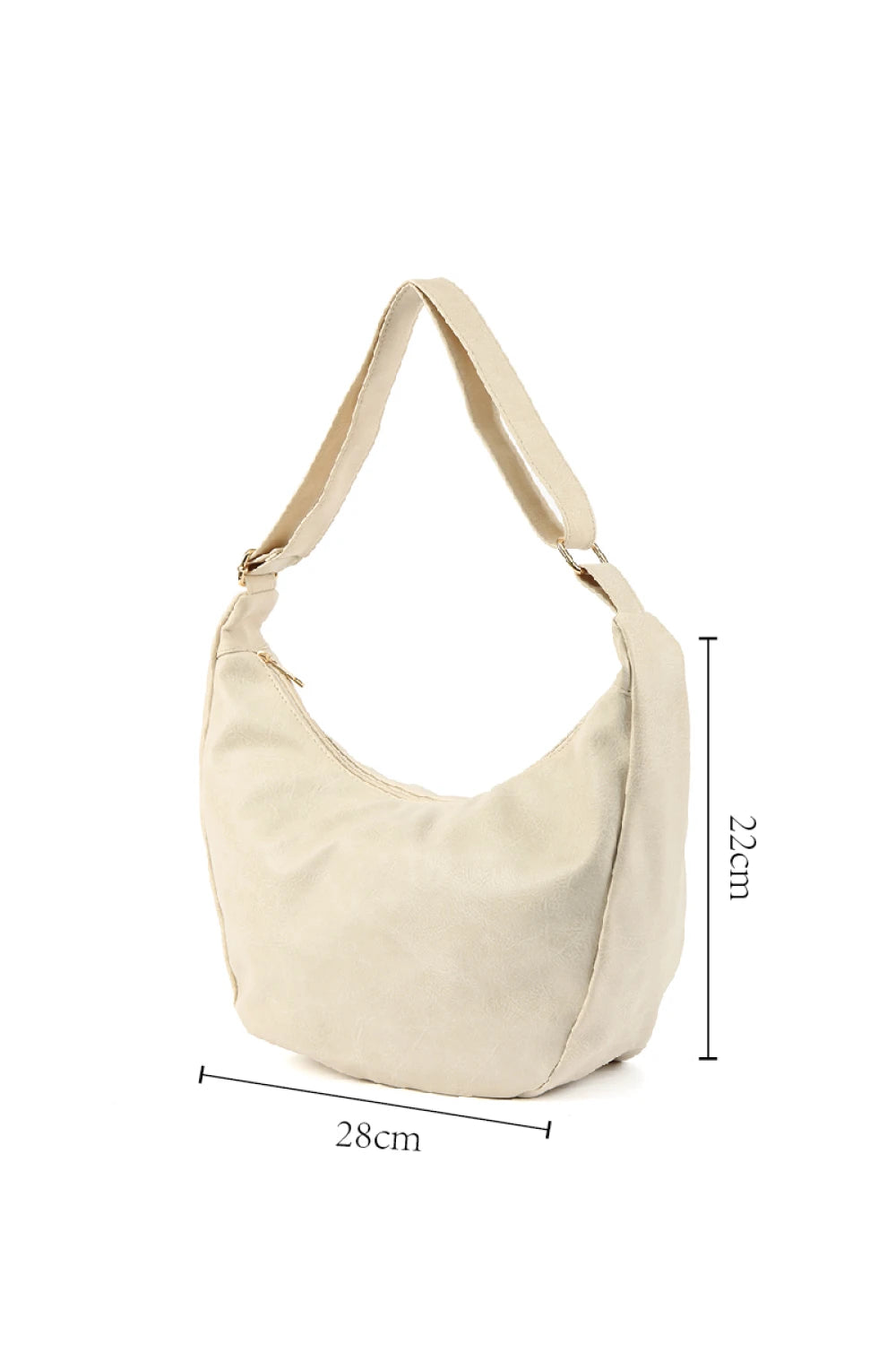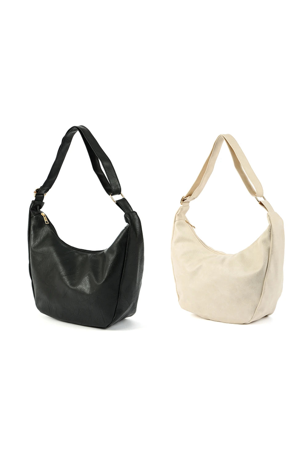 Hobo de silueta media luna en simil cuero suave, liviano y flexible. Lleva correa al hombro regulable y cierre superior seguro. Interior forrado con bolsillo para organizar lo esencial: celular, billetera, llaves y make-up. Caída cómoda que se adapta al cuerpo y look minimal que combina con todo (día o noche).