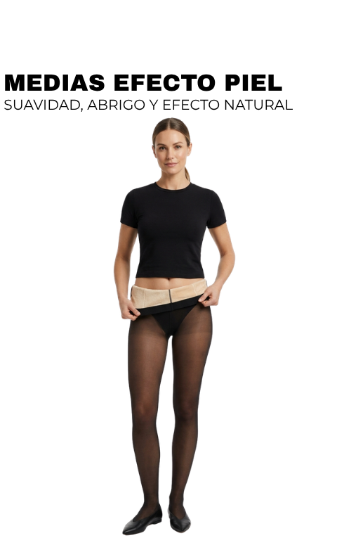 Las Medias Efecto Piel ofrecen una apariencia natural y uniforme, realzando tus piernas con un acabado suave y elegante. Diseñadas para brindar discreción, comodidad y un ajuste perfecto, son ideales para lucir con vestidos, faldas o looks formales. Su tejido ligero y resistente se adapta como una segunda piel, manteniéndose firmes y sin arrugas durante todo el día.
